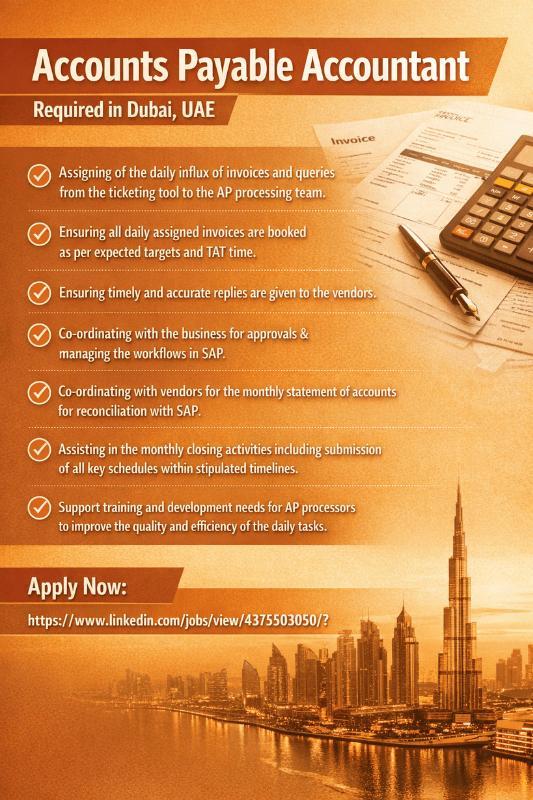 • Ensuring all invoices are paid within agreed due dates, improve the payment cycle and TAT from invoice receipt to payment.