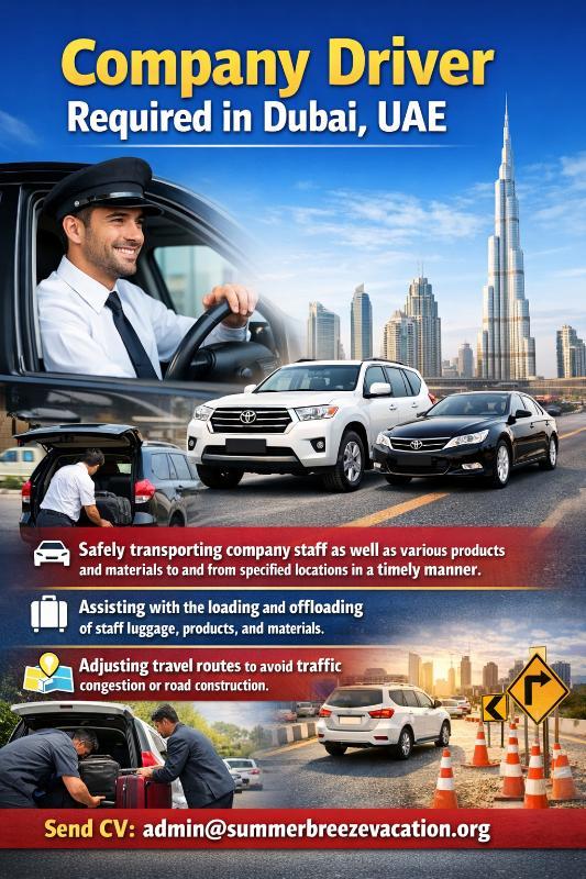 We are looking for a reliable company driver to assist the company with all transport-related duties. The company driver’s responsibilities include dropping and picking up staff, collecting various packages, and maintaining a travel log to record work hours, travel-time and locations traveled to. You should also be able to perform routine checks on the company vehicle.