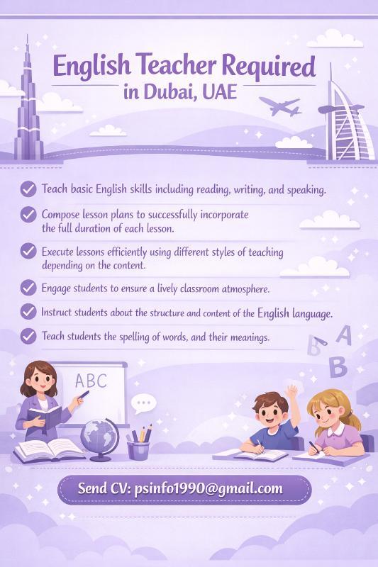 English Teacher Required in Dubai