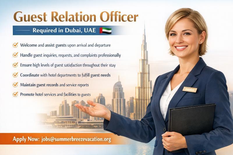 We are looking for a professional, friendly, and customer-focused Guest Relations Officer to ensure an excellent guest experience and handle all guest interactions smoothly.