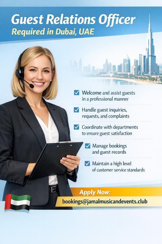 We are looking for a friendly and professional Guest Relations Officer to ensure an excellent guest experience and smooth handling of customer interactions.