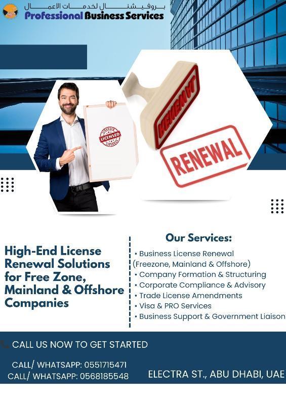High-End License Renewal Solutions for Free Zone, Mainland & Offshore Companies - Abu Dhabi