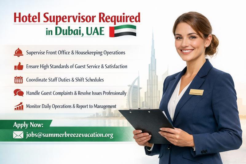 Hotel Supervisor Required in Dubai