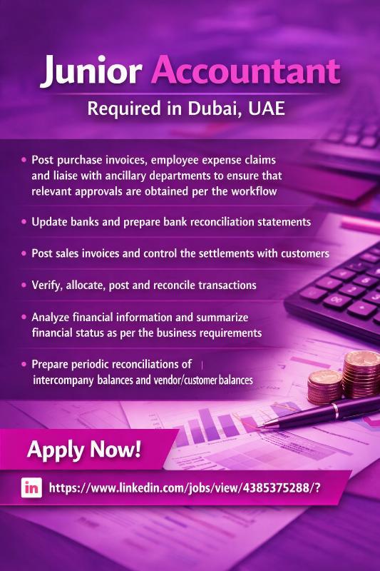 Junior Accountant Required in Dubai - Dubai