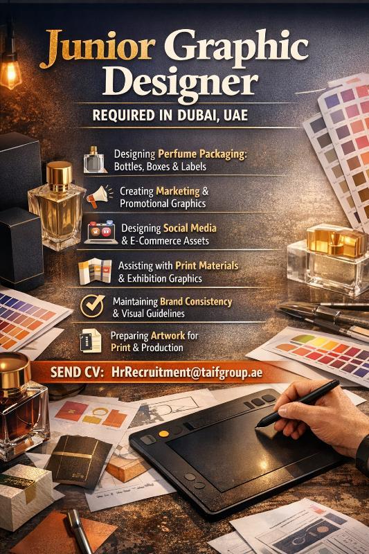 At Taif Group, we create fragrances that tell stories — and we’re looking for a Junior Graphic Designer to help bring those stories to life visually. This role is perfect for a creative designer with 1–2 years of hands-on experience who’s eager to grow, learn, and contribute to a fast-paced perfume and cosmetics environment.