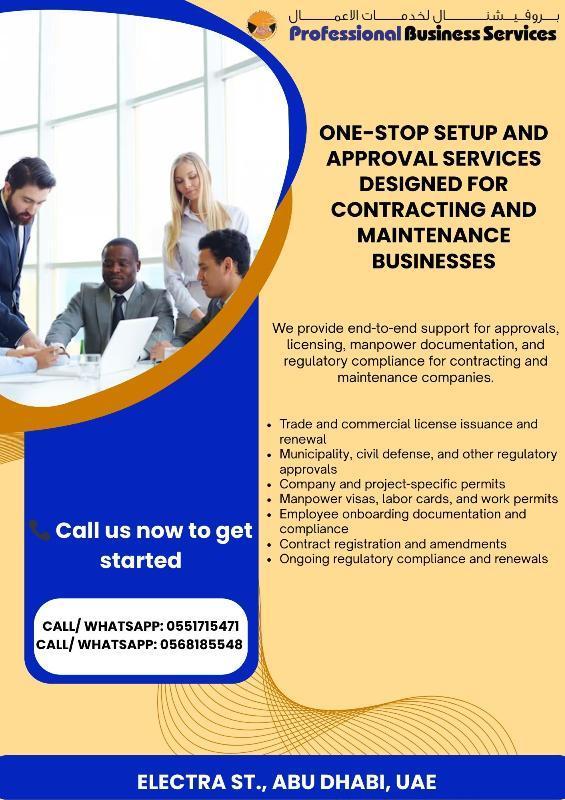 One-stop setup and approval services designed for contracting and maintenance businesses - Abu Dhabi