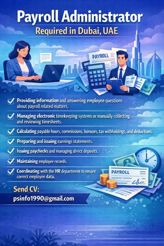 We are looking for an efficient payroll administrator to be responsible for all payroll processes. The payroll administrator’s duties include the management of employee data, ensuring the accuracy of timesheets, computing wages, and ensuring employees are paid correctly and on time.