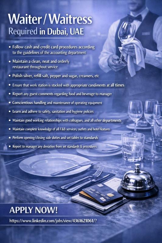 Must know all menu items, their garnishes, contents and preparation methods and be able to relay that information to guests in a polite and concise way if asked.